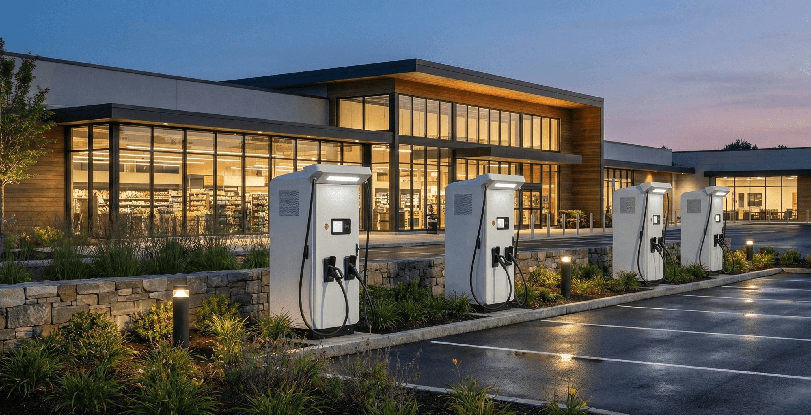 Premium EV charging available for customers and tenants.