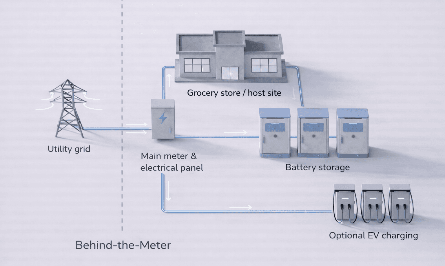 OpenGrid installs and operates behind-the-meter batteries and EV charging at grocery-anchored commercial properties. The process is designed to be predictable, low-impact, and easy for both commercial property teams and grocery operations teams.